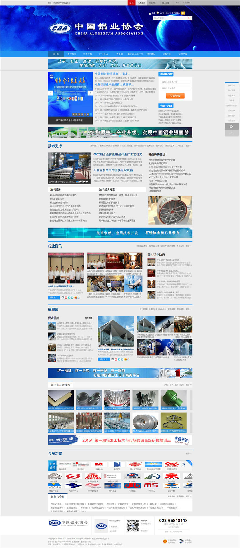 Project Description 中国铝业协会是由中国国内主要从事铝合金铸造、板、带、箔、管、棒、型材、锻件等企业组成的行业协会组织,协会由国内具有一定规模和影响力的企业发起,已有三百多家会员企业,目前还有很多企业踊跃希望加入,协会现有会员企业年销售额1000多亿元人民币,协会会员企业分布在国内华东、华南、西南、环渤海、东北、胶东半岛等中国经济活跃地区;产品涵盖航空航天、兵器装... Official website address 温州http://www.caa2014.com I want to share